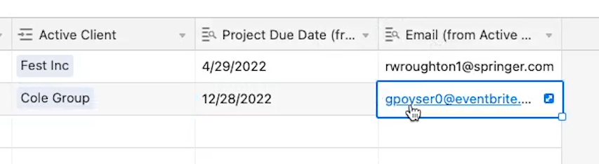 You can also use Lookup fields to include additional data from the linked record. For example, you could add in fields like project due dates, or the client’s email address.