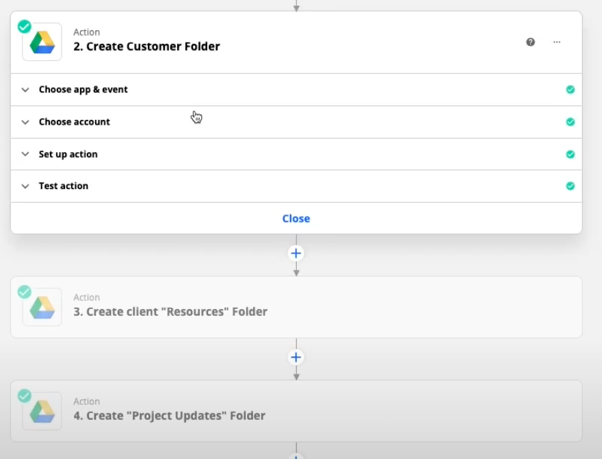 Step 2. The automation creates a “Customer” folder in google drive.